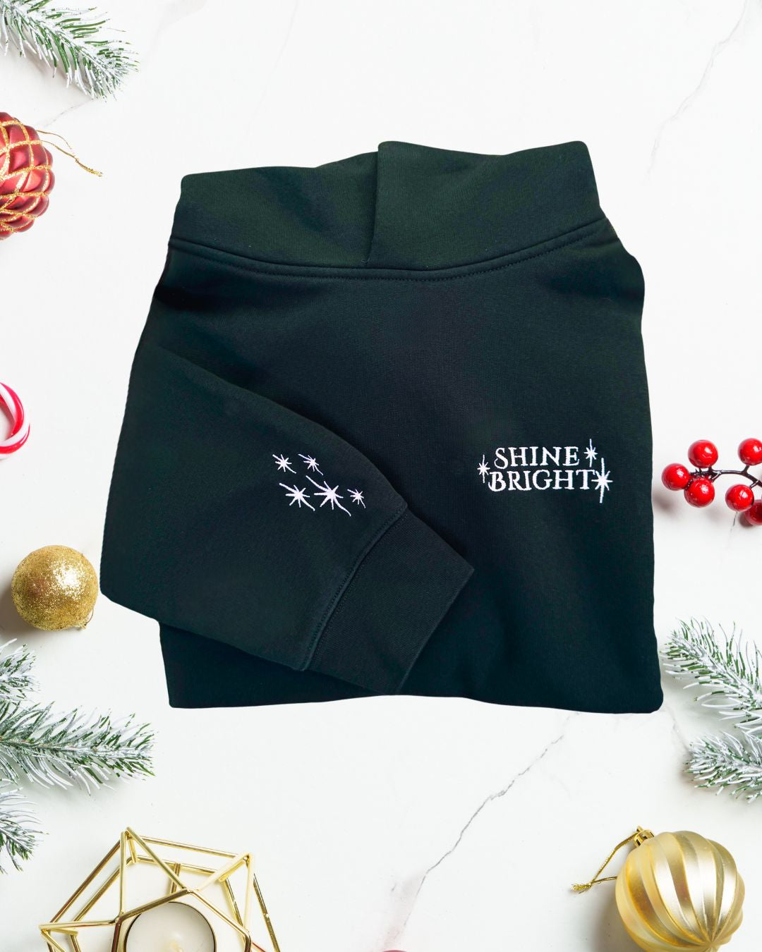 Meet your new favorite layer: the ultra-soft oversized hoodie in a stunning, deep Pine Green. We love this shade because it carries a seasonal holiday feel but is truly meant to be worn all year long. Featuring embroidered "Shine Bright" text and diamond stars, a reminder to never dim your light and let your authentic self sparkle. It’s perfect for layering with a relaxed fit and made from extra soft premium-quality fabric to ensure maximum comfort.